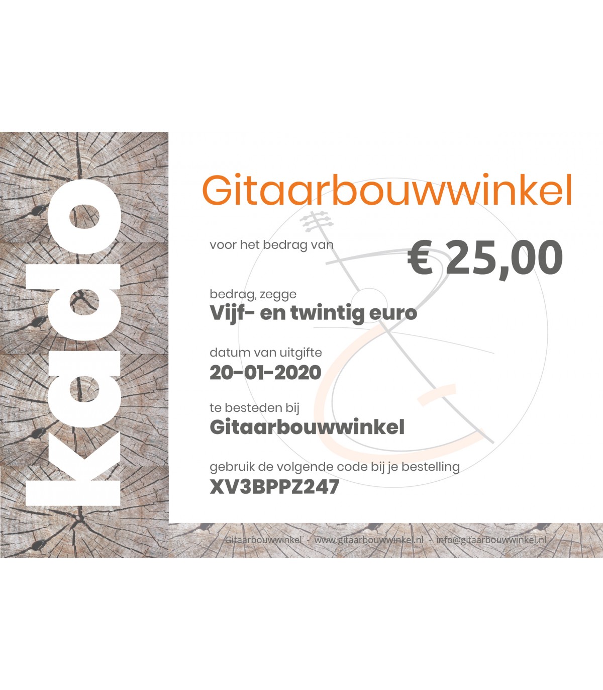 Nouveau dans Gitaarbouwwinkel - Chèque cadeau par e-mail d'une valeur de 25 €